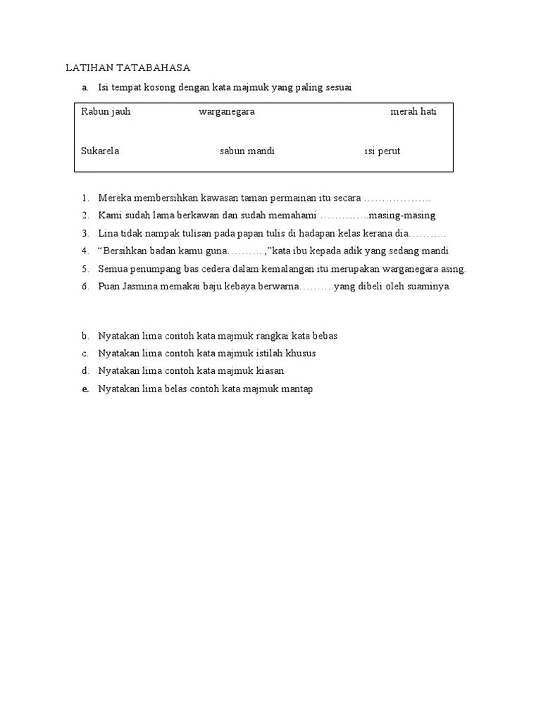 Latihan pengukuhan kata majmuk bebas kuiz latihan kata majmuk. Latihan pengukuhan kata majmuk bebas kuiz.